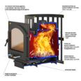 • Система двойного дожига газов уменьшает расход дров и увеличивает эффективность печи (КПД).