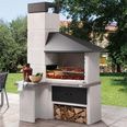 Престижное садовое барбекю с боковой загрузкой дров, дымоход из бетона. Столешница - гранулированный мрамор серого цвета, основание и стенки отделаны камнем. Жаровня из жаропрочного бетона, укрепленного по площади решетки. Двойные стенки. Кожух из окрашенной стали, стандартный. Гриль-решётка 90х40 см, ограничитель для дров. Боковая загрузка дров. Зольник с системой циркуляции воздуха "fast-fire-box".