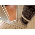 • Полукруглая форма печи и угловое расположение по максимуму экономят пространство в парилке.