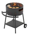 Мангал Дачник, изготовленный из конструкционной стали толщиной 2 мм, имеет круглую форму. Он предназначен для совместного использования чугунной плитой Везувий Gurman диаметром 45 сантиметров. Поступление воздуха для горения обеспечивают 12 круглых отверстий в нижней части мангала. Боковые отверстия в стенках выполняют функцию ручек, позволяют легко и удобно перемещать мангал по дачному участку. Плита Gurman Ø450 выполнена из качественного пищевого чугуна и предназначена для приготовления на открытом огне самых разнообразных блюд. Плита имеет круглую форму и разделена на две части. Подставка изготовлена из стального профиля квадратного сечения. Высота подставки 500 мм, глубина (с ручкой для перемещения) – 602 мм, ширина 575 мм. Вес подставки 6,9 кг.